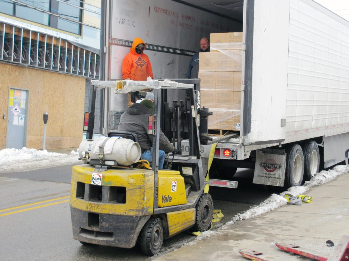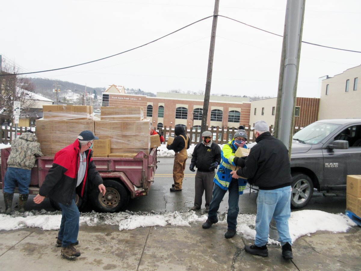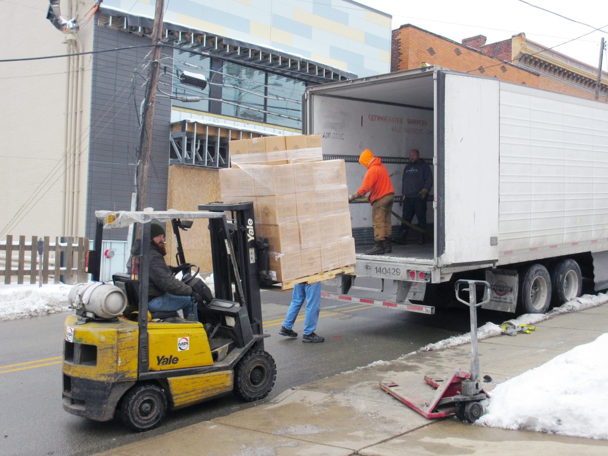 About 80 volunteers offered to help unload Thursday’s shipment and deliver food, including employees from MPI Supply, a mining supply firm in Canonsburg. MPI also donated the use of a forklift to assist in unloading.