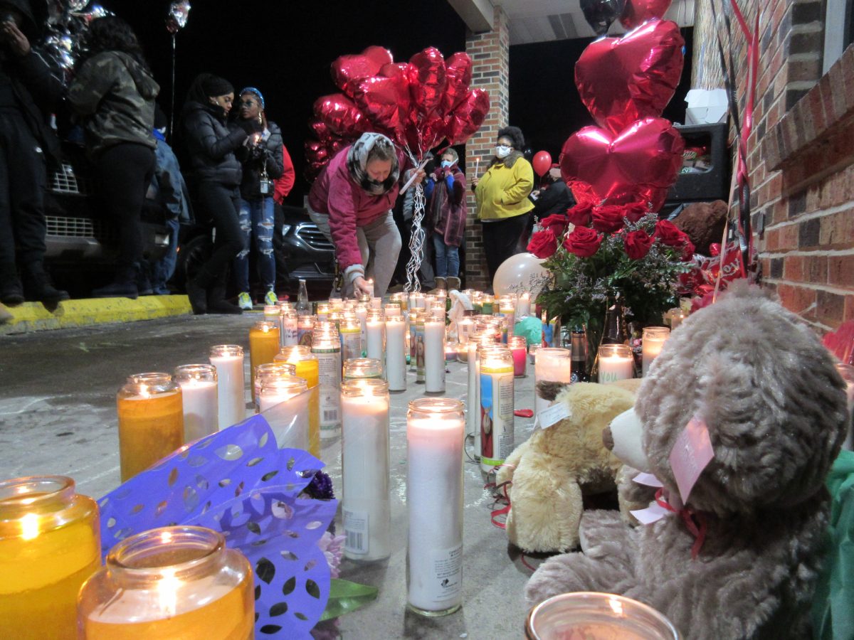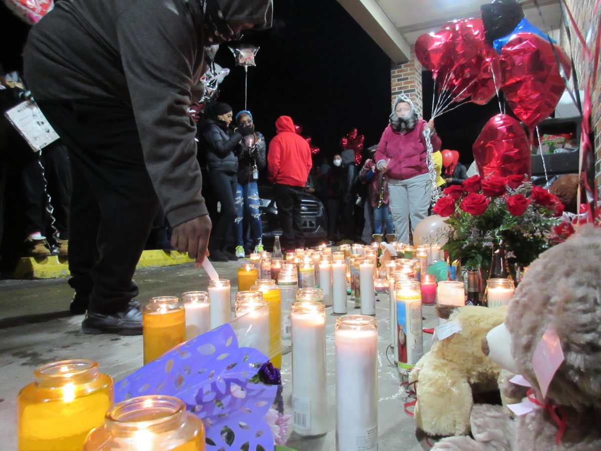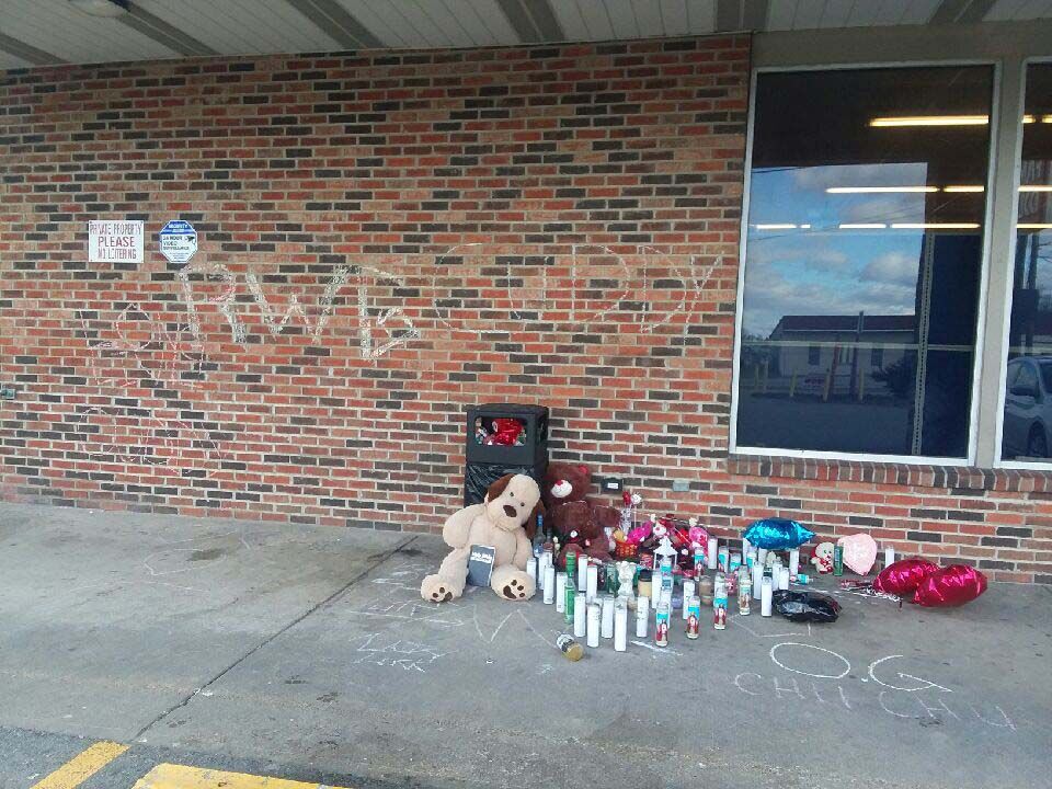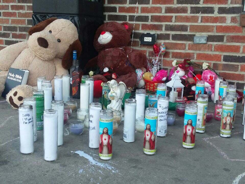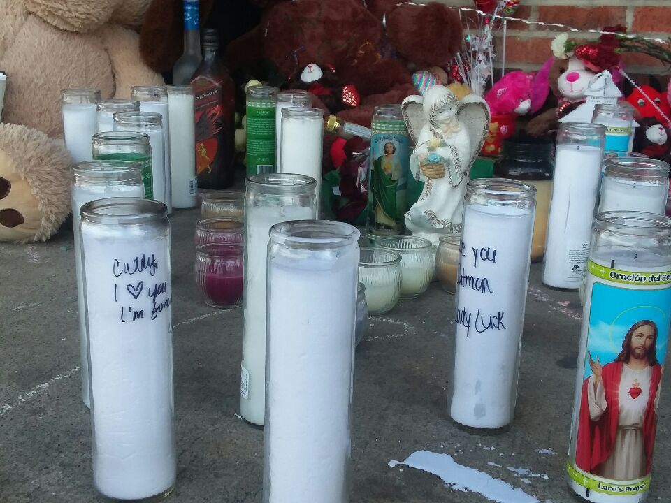 Stuffed animals, “I love you” notes, a Bible, liquor bottles and dozens of candles covered the sidewalk in front of the Highland Avenue store, where Darnell was shot and killed Tuesday afternoon in front of his family. “RWG (Rest With God) Cuddy,” and “Long Live Cuddy” were etched into the brick on the front of the building.