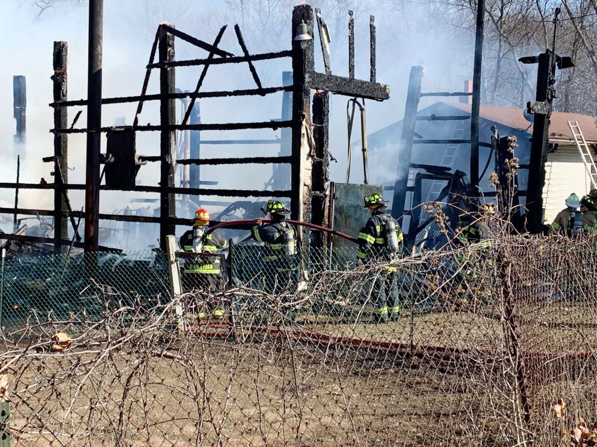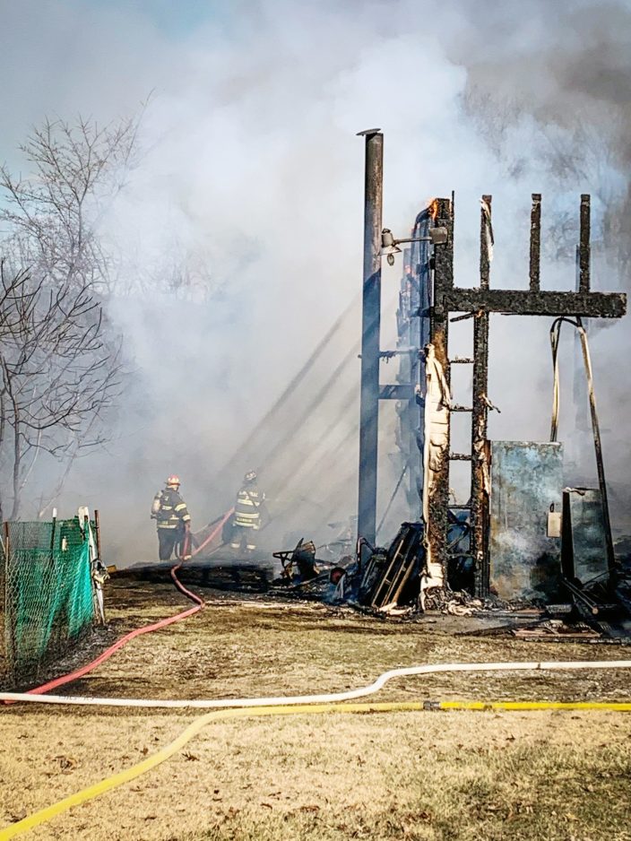 Township fire Chief Fred Hutson said the owner of the garage and house in the 900 block of Mounts Road was home with his son when the fire started about 2:16 p.m. They heard a “loud pop” outside, Hutson said.