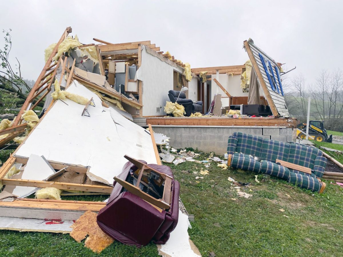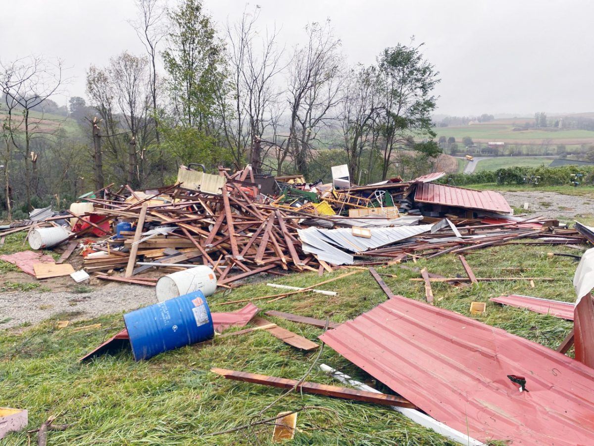 The tornado’s path of destruction was evident, as it seemed to cut a straight path through Hopewell and Mount Pleasant townships, first ripping the roof off a barn at the Cecchetti Farm at 292 Willow Road, Hopewell, before tearing through a home at 350 Willow, owned by Mount Pleasant Township Fire Chief Adam Lohr. It moved next door to 356 Willow where it leveled a garage before destroying the barn and bee farm at Swope’s Berries & Bees, 366 Willow.