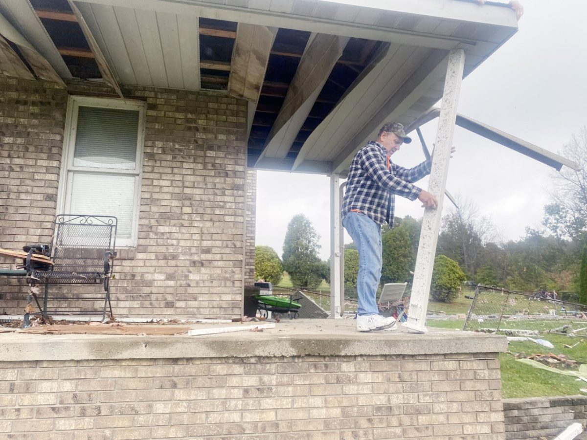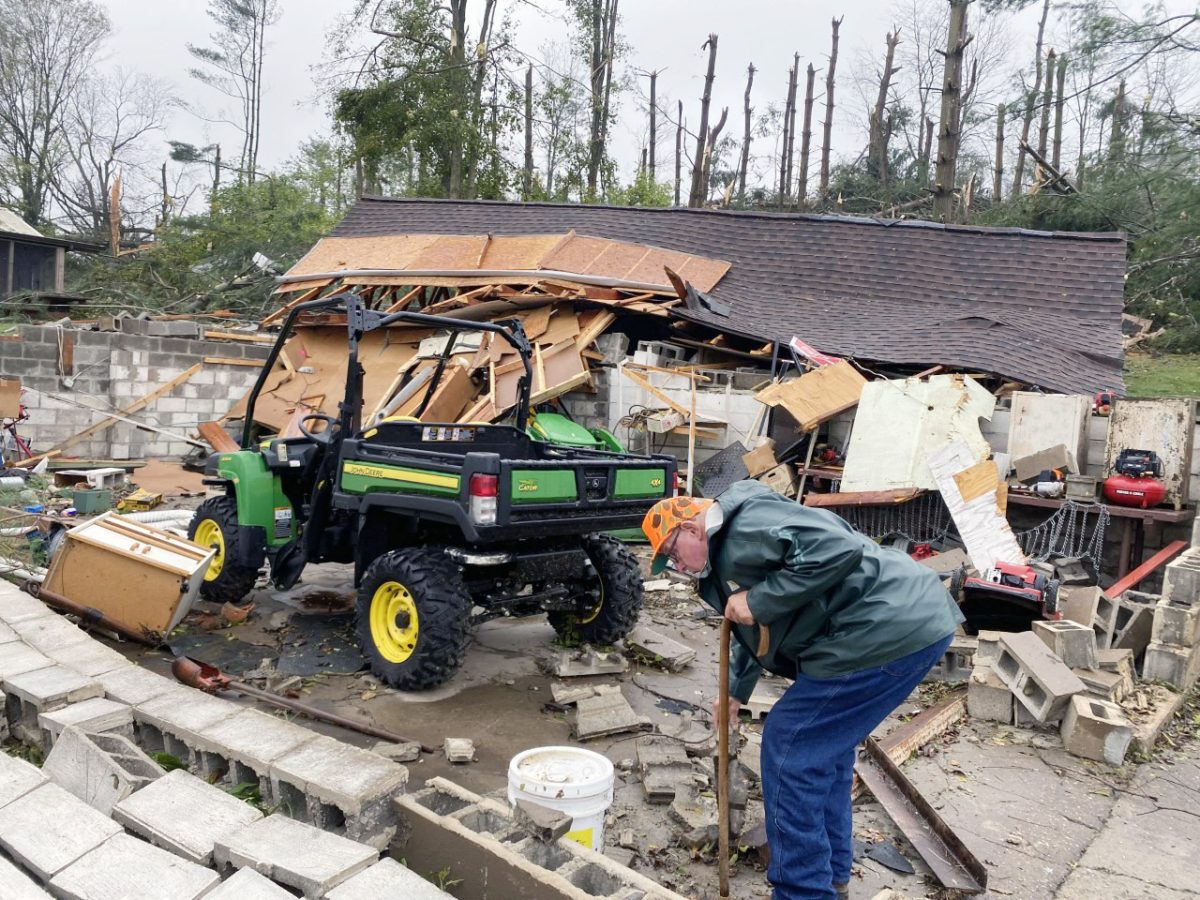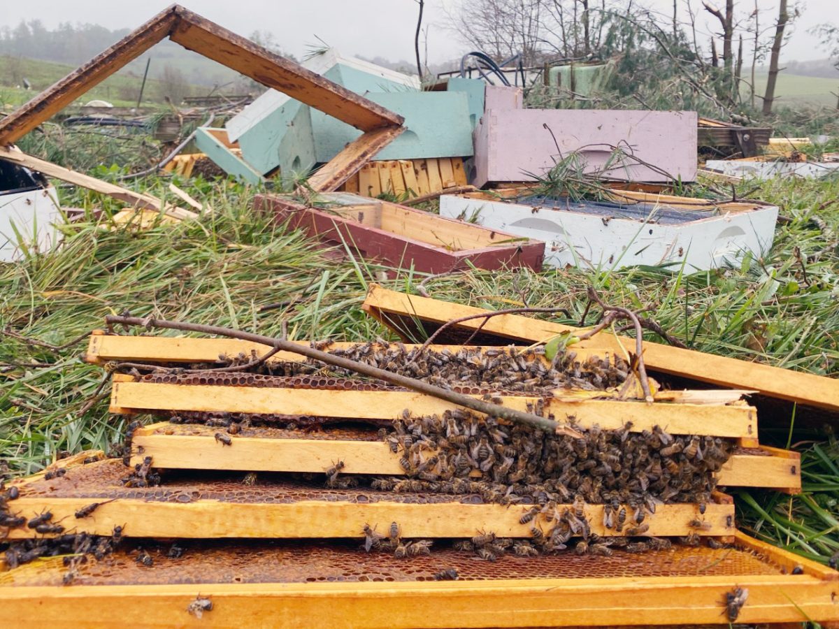 The tornado missed the Swopes’ home, leaving only minor exterior damage. Swope said they plan to rebuild their barn and bee farm.