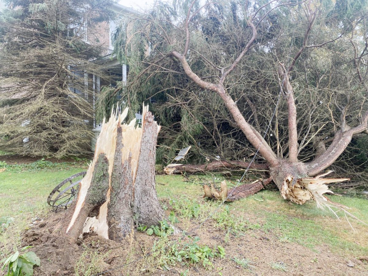 Stephanie Kiray lives at the house on Lowry Farm on Dairy Road. A large tree in front of the house landed on the front porch, but spared the rest of the structure from any significant damage. The siding was ripped off a barn, and debris was strewn about the property.
