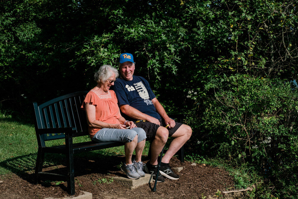 Mike and Bruce Engman of Nottingham Township come to Peters Lake quite often for walks and to talk by the water. The Engmans, who lived for nearly 25 years in Peters Township, used to fish at the lake, but now they make the short drive from their new home to get exercise.
