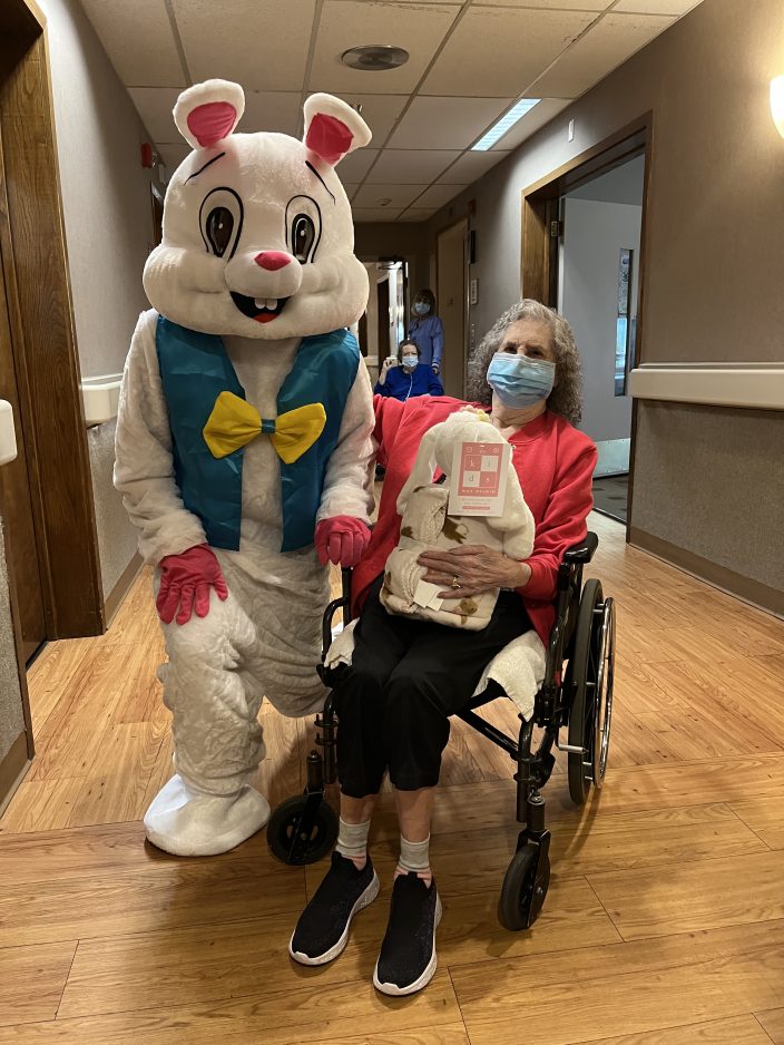 “This is so nice. I love my bunny,” said Deborah Balogh, who chatted briefly with the Easter bunny and FaceTimed with her granddaughter to show her the festively decorated building.