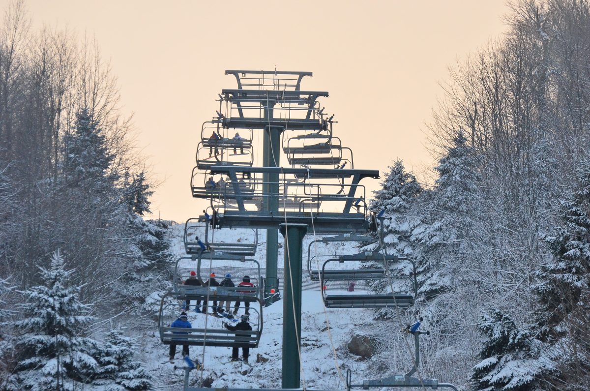 Lifts carry skiers up the mountain at Seven Springs.