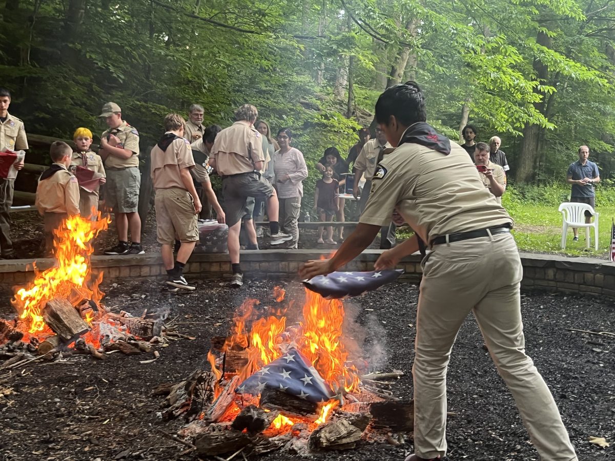 “We’re doing it in a way prescribed by the flag code, which funnily enough is burning the flag,” said Ian Dawson, 18, an assistant Scoutmaster with Troop 22. “Doing it as prescribed by the flag code instead of some other way that some people might think works, but isn’t actually in keeping with the institutions and spirit of the United States as a whole.”