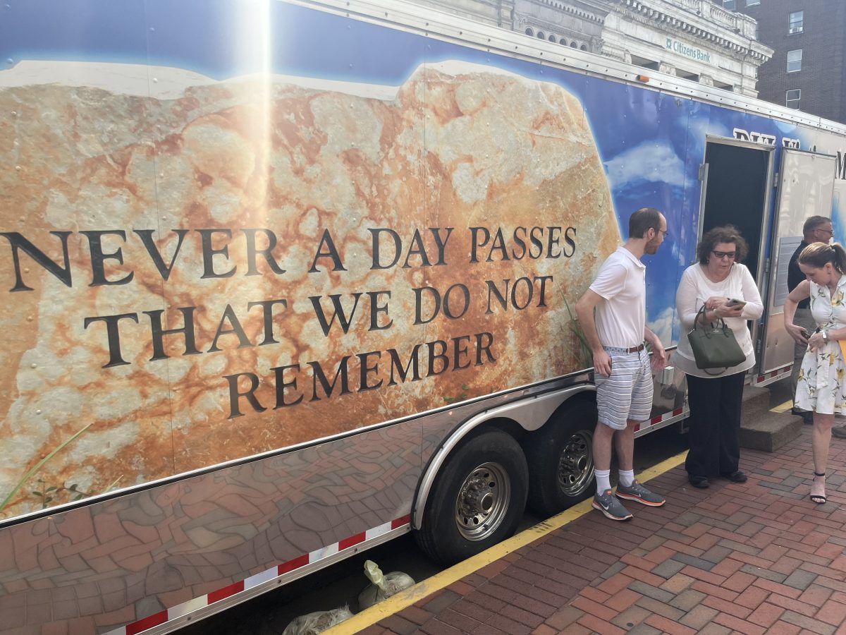 The memorial – a mobile replica of a memorial garden in Harrisburg that contains the names of about 3,000 victims of impaired drivers – was parked in front of the Washington County Courthouse Thursday morning.