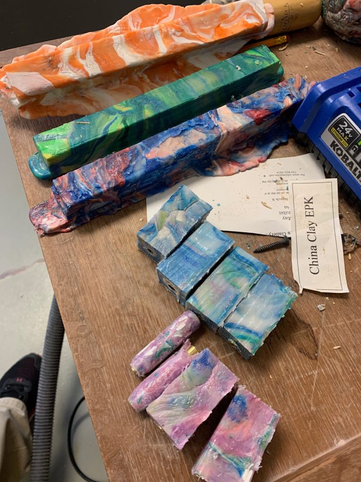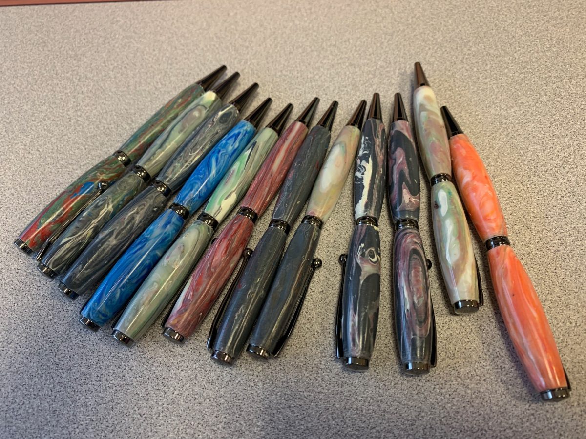 Items that have been made include a garden hoe handle, flowerpots, bowls and pens. Pens have been sold on campus.