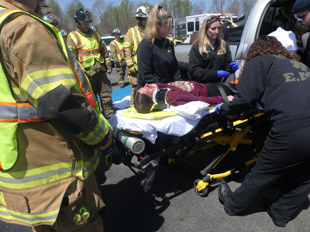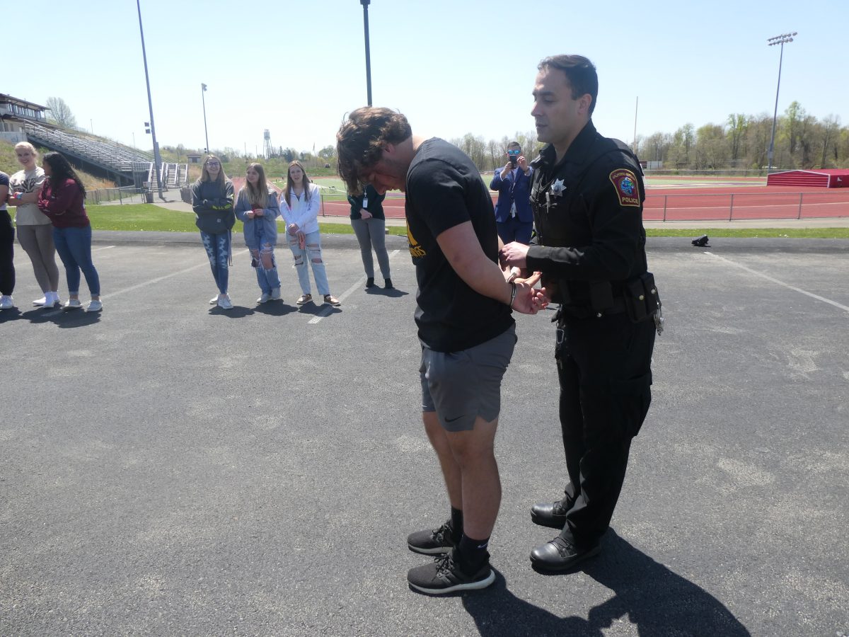 The mock vehicle accident presented the potential results of drunken driving, with one victim “perishing” in the crash. Portraying the victims were seniors Tayla Pascoe, Ethan Fike, Hunter Assad and Gianna Grillo and junior Ana Georgagias.
