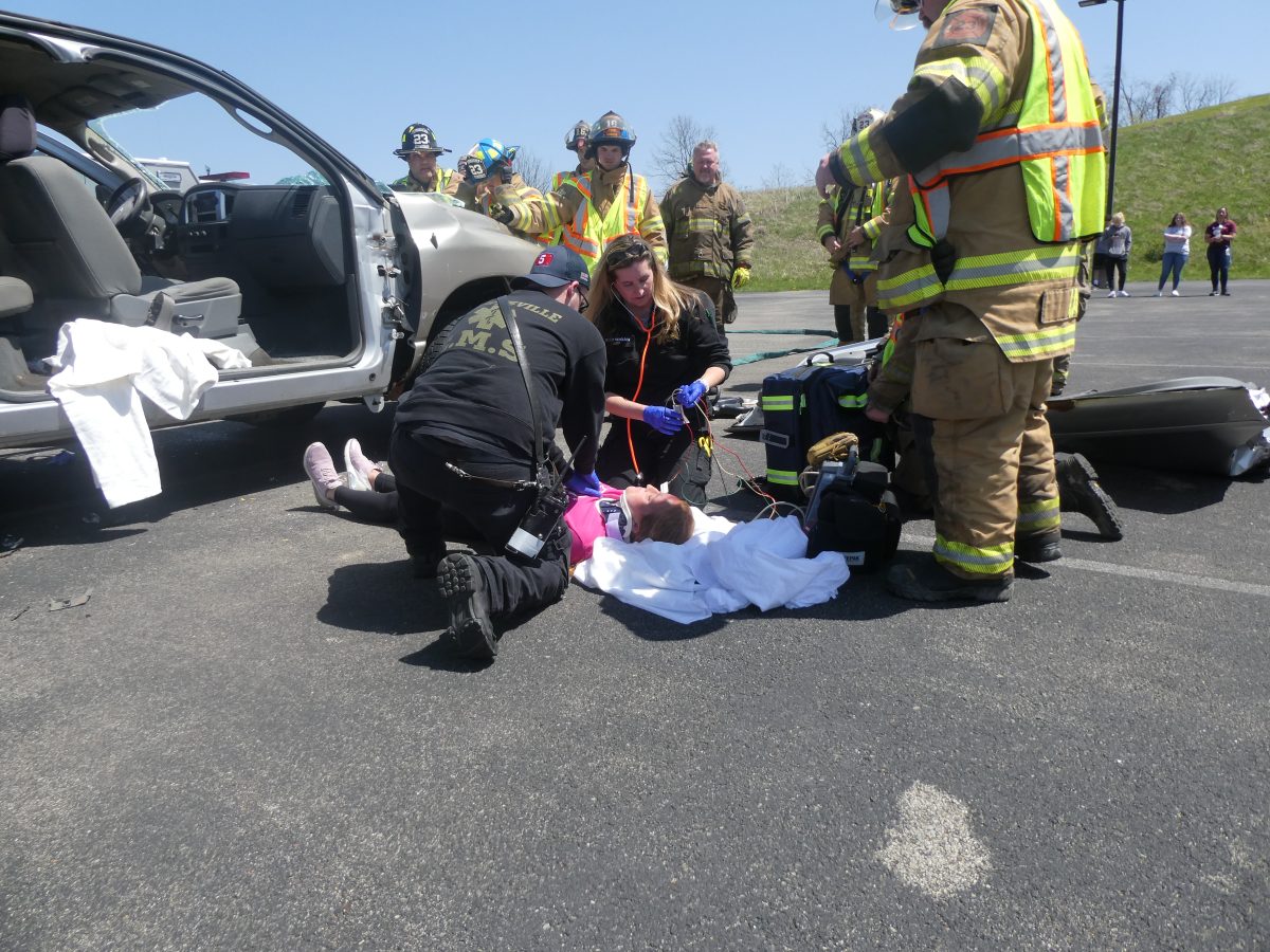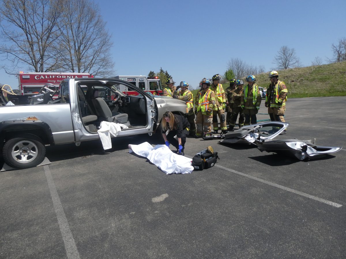 Among those lending a hand on scene were the California Borough Police Department, firefighters from the Roscoe and California volunteer fire departments and Brownsville Ambulance Service. The crash was part of a Teen Driver Safety Expo held at the school Friday.