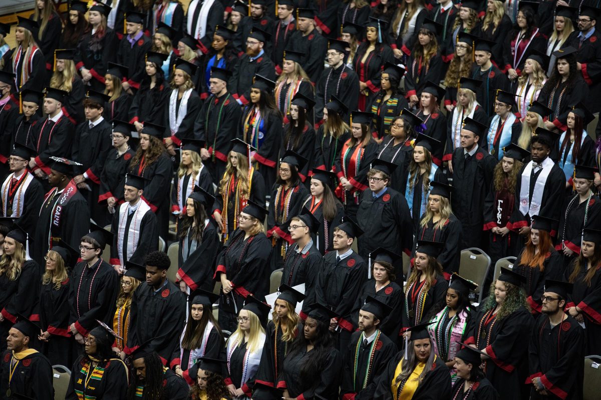 More than 1,000 California University of Pennsylvania students who earned associate, bachelor’s, master’s and doctoral degrees graduated Saturday at ceremonies that took place at the Convocation Center. Two women each with years of service and contributions to Cal U. received honorary doctorates as the university celebrated its 194th commencement. Geraldine Jones, former university president, and Karen Rutledge, who co-founded the Rutledge Institute for Early Childhood Education at Cal U., received their Honorary Doctorate of Humane Letters, honoris causa. Rutledge addressed the Eberly College of Science and Technology graduates, and Jones spoke to the College of Education and Liberal Arts graduates.