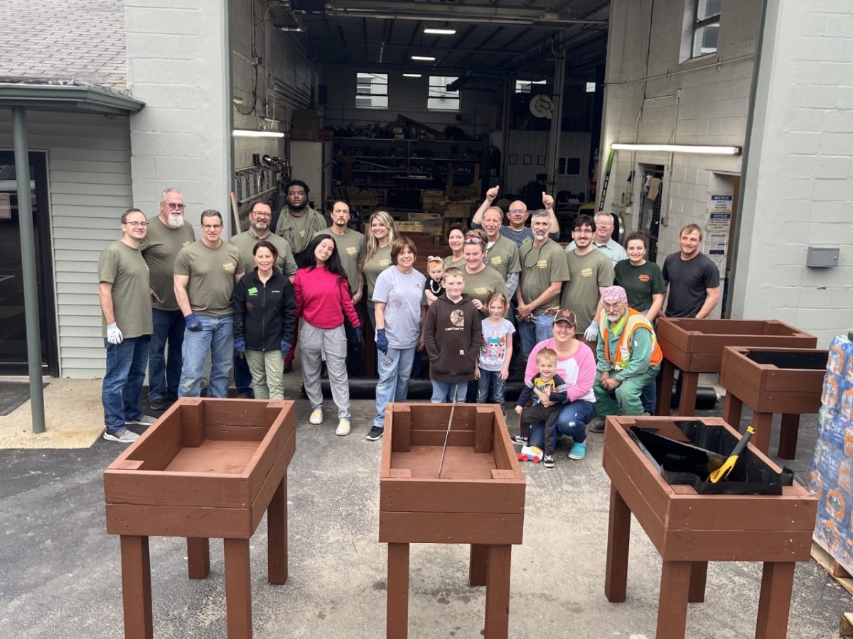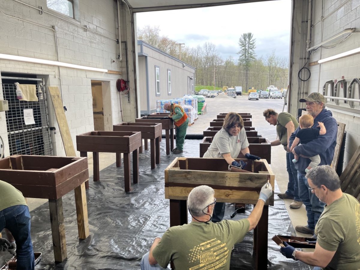 The boxes are the result of efforts of employees from Hartman & Hartman Construction Inc. of Eighty Four. Construction and painting of 24 raised planter boxes took place last week at the company’s offices.