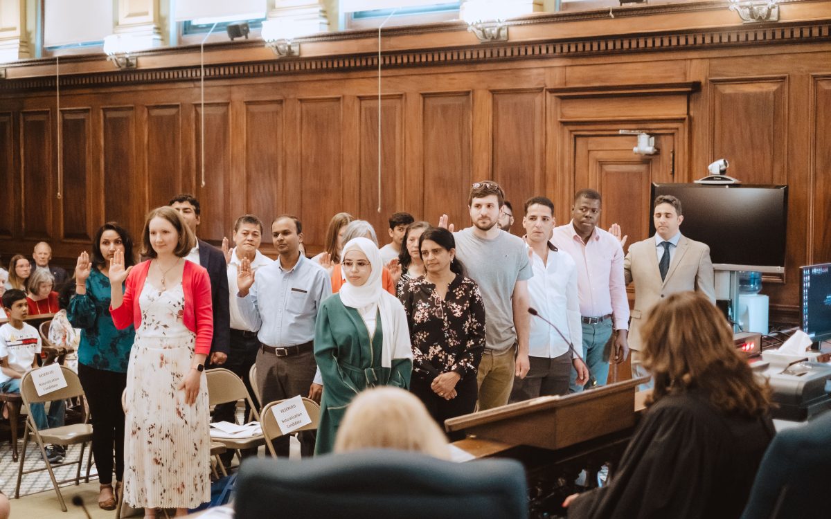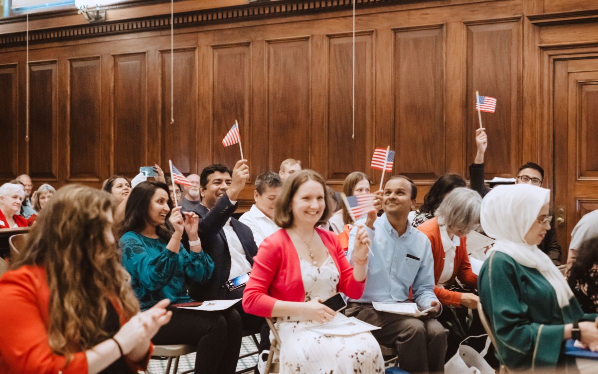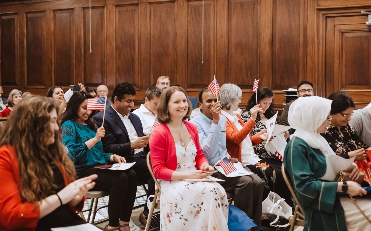 “Congratulations, new citizens of the United States. Welcome to our nation,” he said. “As you know, the United States was founded by the immigration of people just like you.