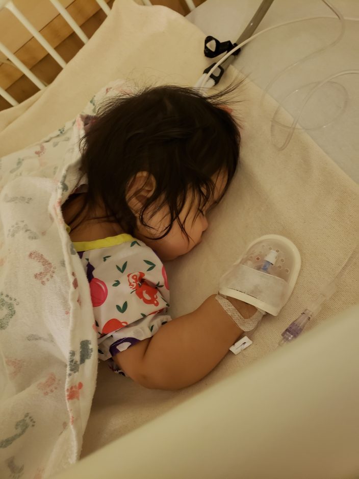 On February 11, 2019, both Luna and Eliana were prepped for surgery. Luna was 7 months old when she underwent surgery to donate bone marrow to her elder sister.