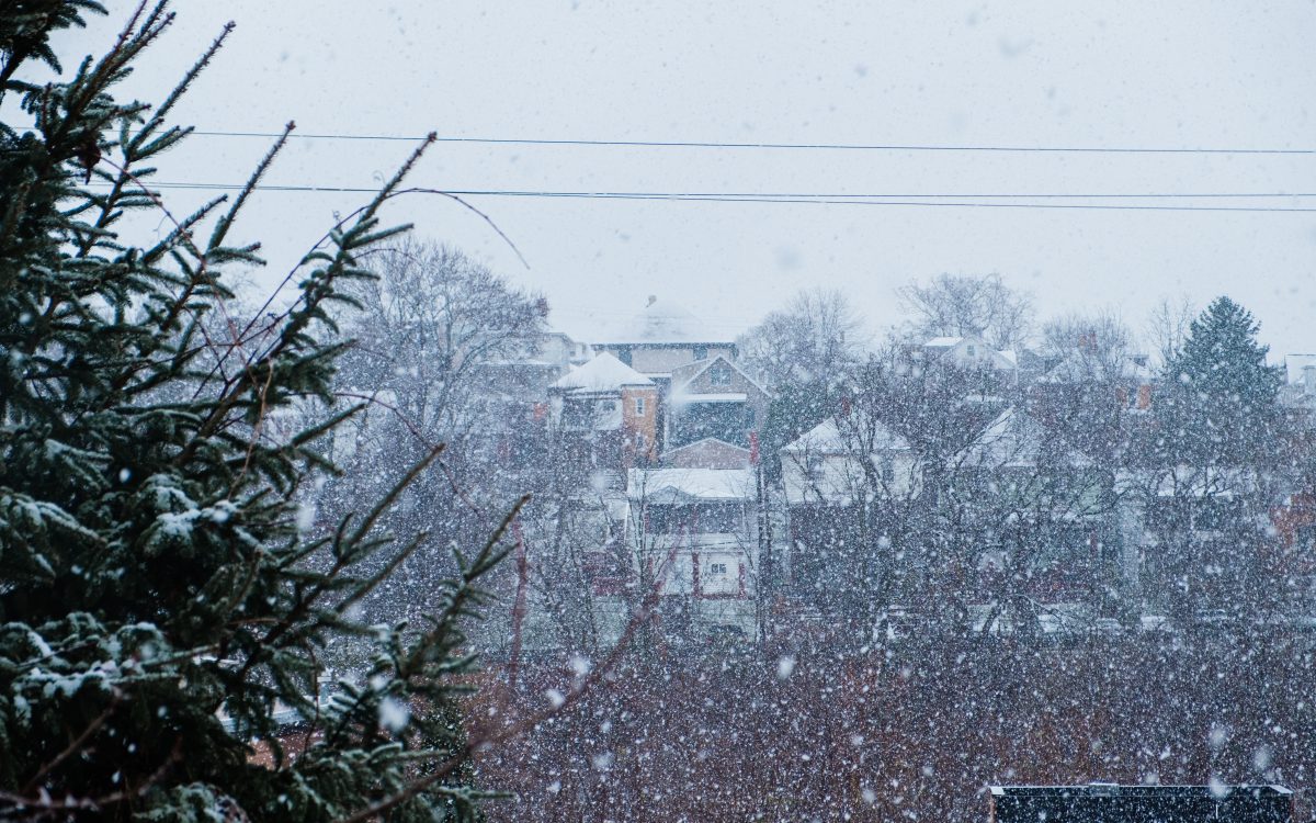 Rooftops donned white hats Tuesday afternoon as the first snowfall of the season settled over Southwestern Pennsylvania.