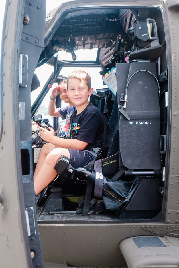 “This is our first time,” said Daniel Leonard, whose kids, Sean, 9, and Olivia, 12, pretend-piloted a real U.S. Army Blackhawk chopper. “The kids were interested in it. I’m interested. I like planes, I like flying.”