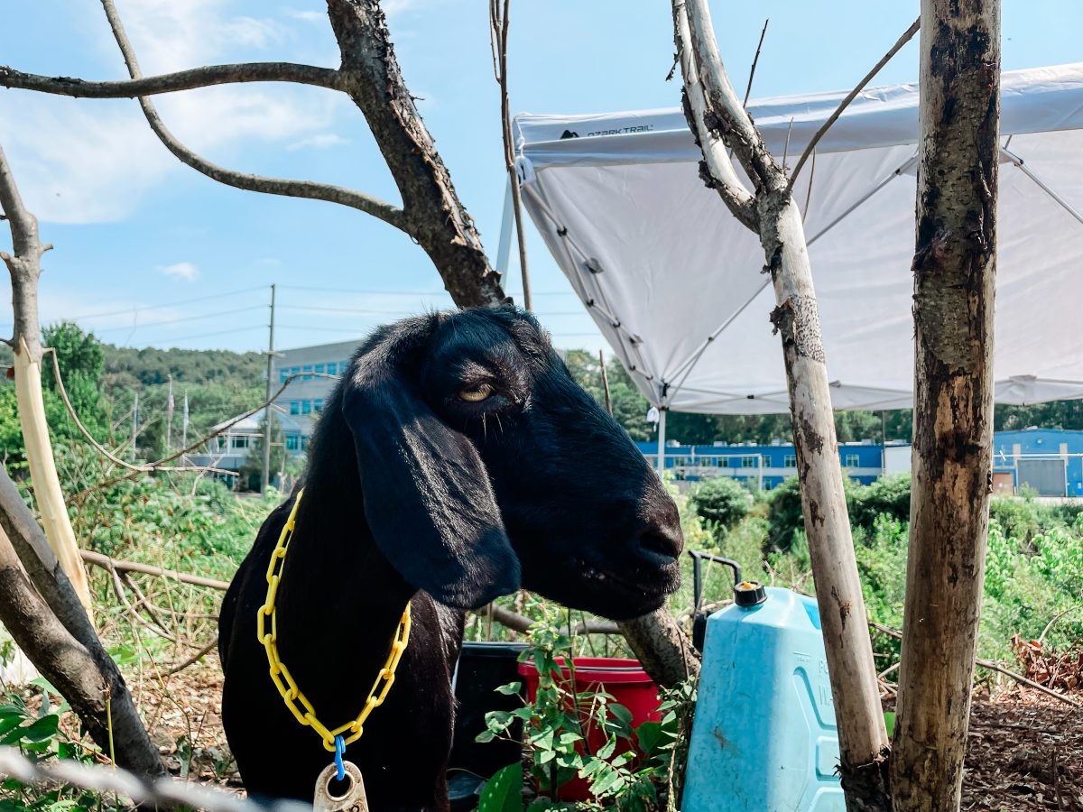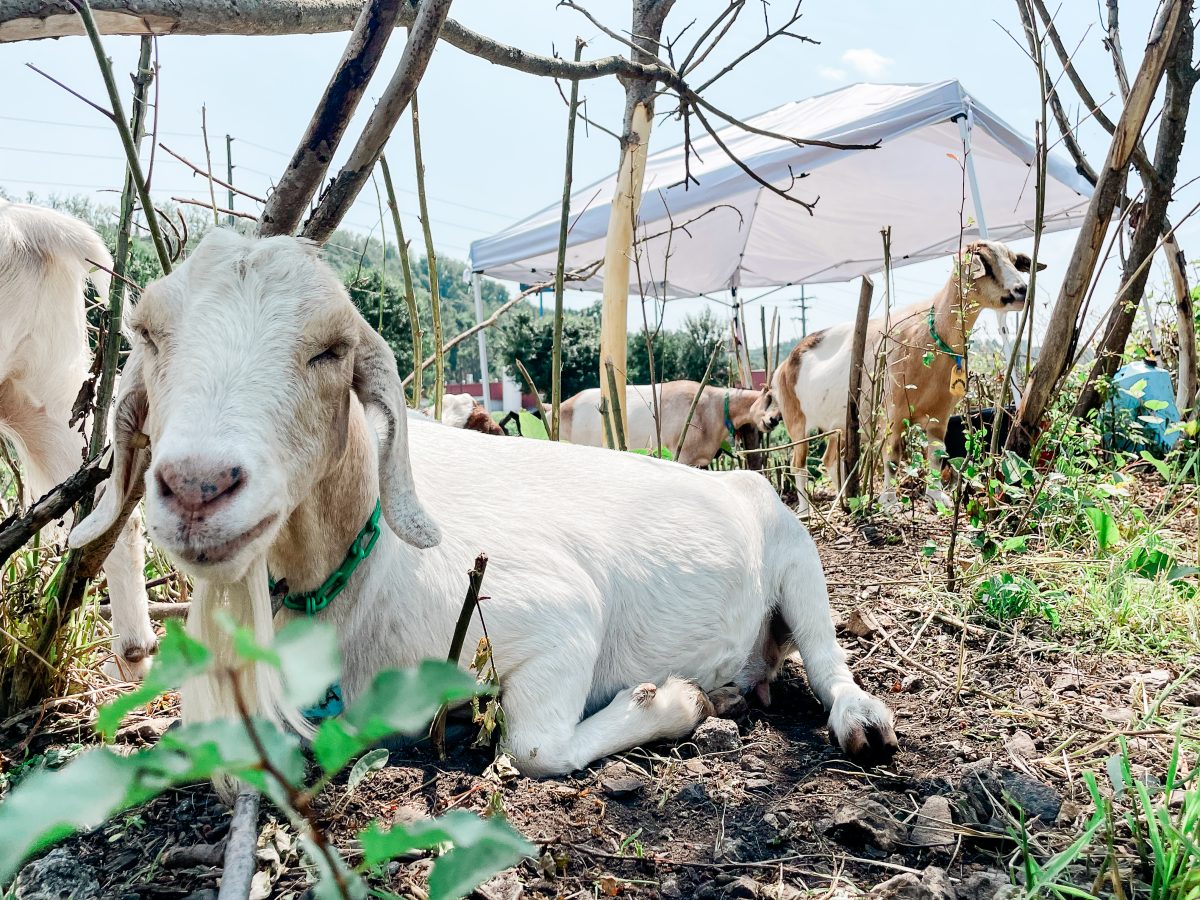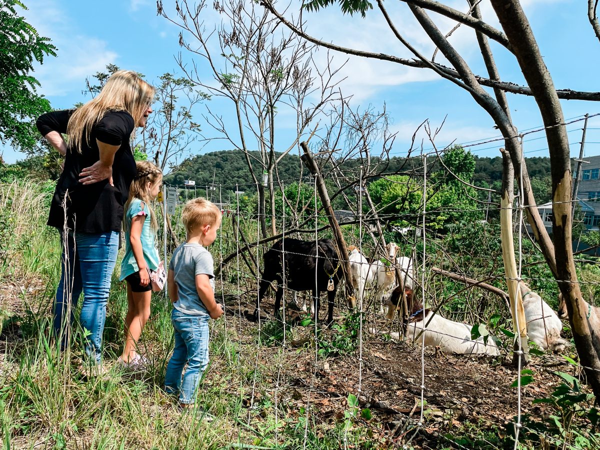 A herd of goats is drawing attention in downtown Canonsburg, where the four-legged attraction is working through the end of summer to clear brush and overgrowth along Chartiers Creek. The borough first welcomed Goatscape Allegheny’s crew in April, when two herds started landscaping along both Four Coins Drive and Adams Avenue. Now the goats are back for round two, and drew enthusiastic visitors to their East Pike Street “home office” Saturday afternoon, when Maureen Butor and her two grandchildren, Selah Butor, 6, and Chatham Butor, 3, dropped by to say hello. “Even the postal delivery woman … knows how much I love the goats,” Maureen Butor laughed as she and her grandchildren watched the goats hard at work.