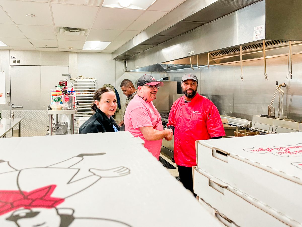 National Pizza Day celebrations were in full swing at the Washington City Mission Thursday, when Shannon and Tom Grande of Grande Jr. Pizza Express delivered 30 pizzas to the downtown campus.