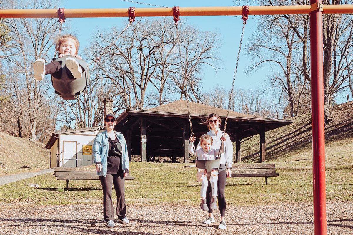 Blue skies, sunshine and a warm breeze enticed folks outdoors Wednesday for a little play, some relaxation and casual conversation. Fast friends Clara Chapman, 3, of Washington, and Maggie DiSaia, 3, of Canonsburg, spent the morning swinging while their moms, Carly Chapman and Jo DiSaia, chatted. Colton Huwe and his pup Bruno traveled from Bethel Park to Canonsburg Lake for some good fishing, while North Strabane resident Byron Stewart shot hoops at the park’s courts. Doug Mickey and his granddaughter Isabella Taylor, of Canonsburg, joined the crowds at North Strabane Park, where Paislynn Ross, 2, played on the jungle gym with her grandma Amy “Gammy” Ross of Strabane and Ross’ friend, Desiree Calloway. People were happy to take advantage of the spring-like day ahead of weather reports calling for rain and, next week, snow.