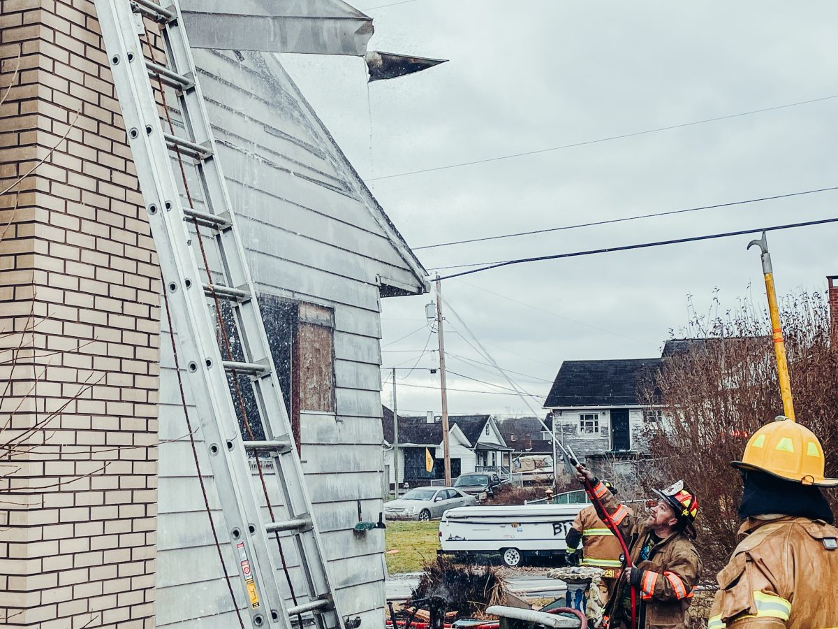 Firefighters from Elrama, Blaine Hill, Bethel Park, Elizabeth, Jefferson Hills and Finleyville work together at the scene of a house fire in Union Township Friday morning. Elrama Fire Company received a call around 11:30 a.m., and it took crews about a half hour to get the blaze under control.
