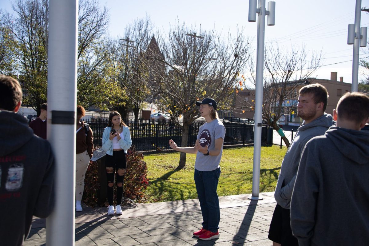 While he did go along on the walking field trips to send students on a scavenger hunt at the George C. Marshall Plaza, Edenfield said his duties for the project was more of an administrative one, as he found sponsors to cover the cost of printing the postcards as well as area businesses to sell the postcards.