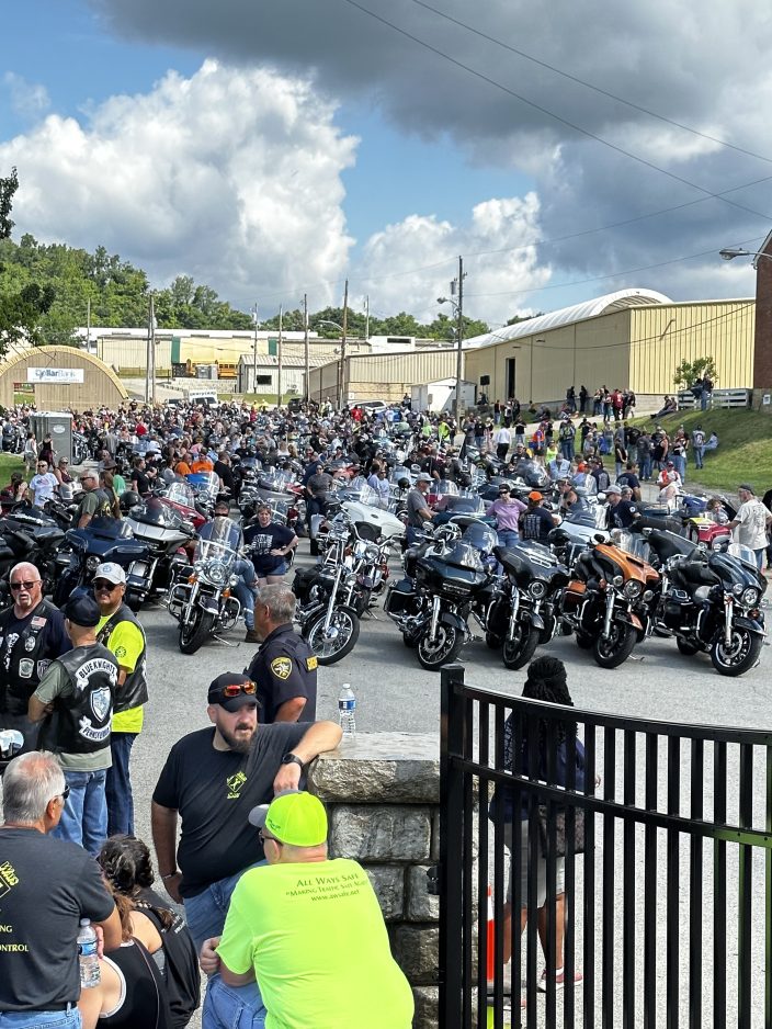 “This is our 20th year for the Blue Ride, which is fantastic. Not too many rides last that long,” he said, adding that 400 to 500 motorcycles were expected along the roughly 94-mile course. Current and former law enforcement officers and their families and friends with an interest in motorcycles and giving back to the community participate. Riders left the Washington County Fairgrounds at 11:30 a.m. Sunday.