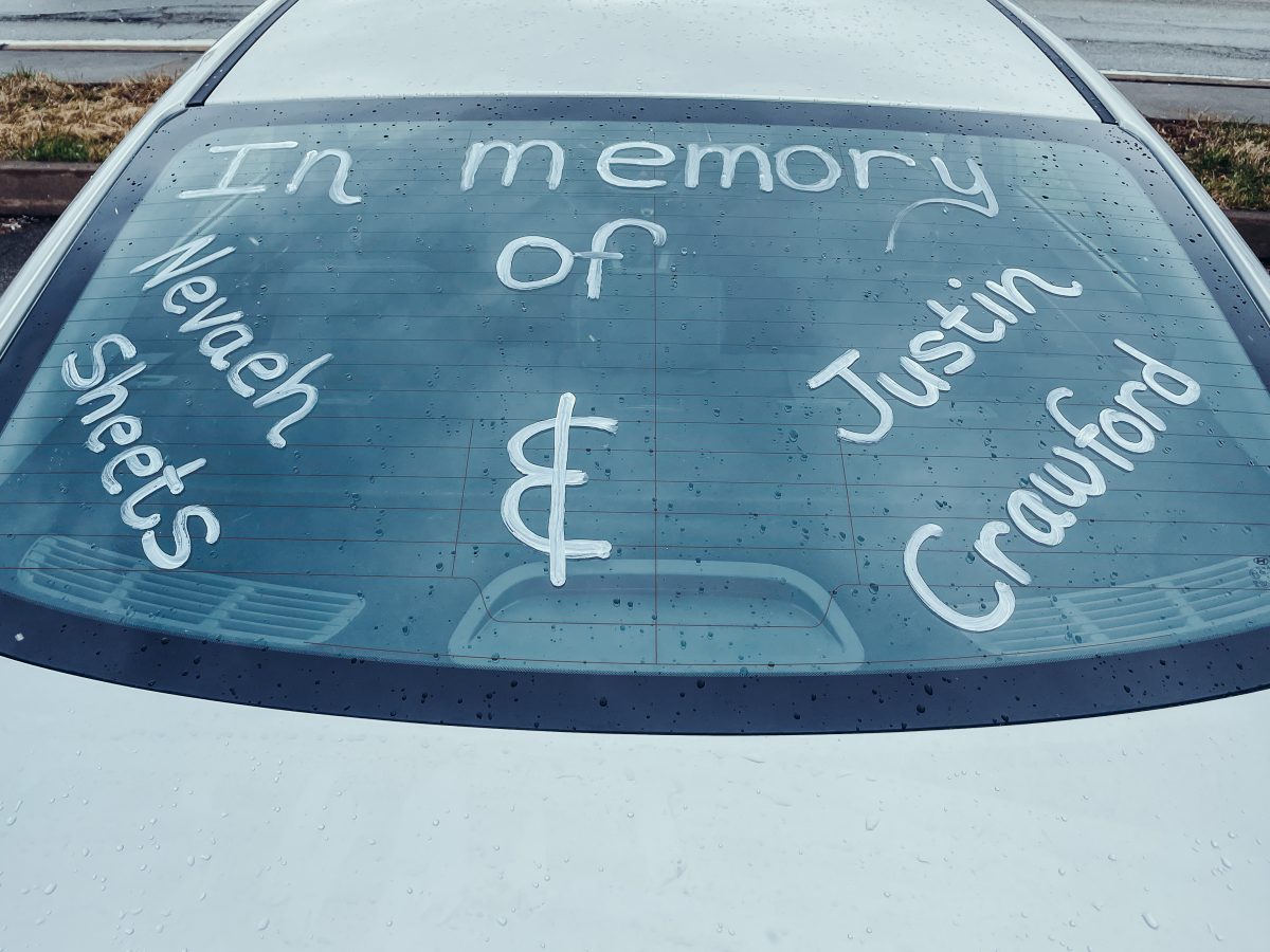 More than 100 people in nearly as many trucks and cars processed from the Beau Street Park and Ride to a section of East Maiden Street Monday evening as part of a memorial convoy honoring the lives of Justin Crawford and Nevaeh Sheets.