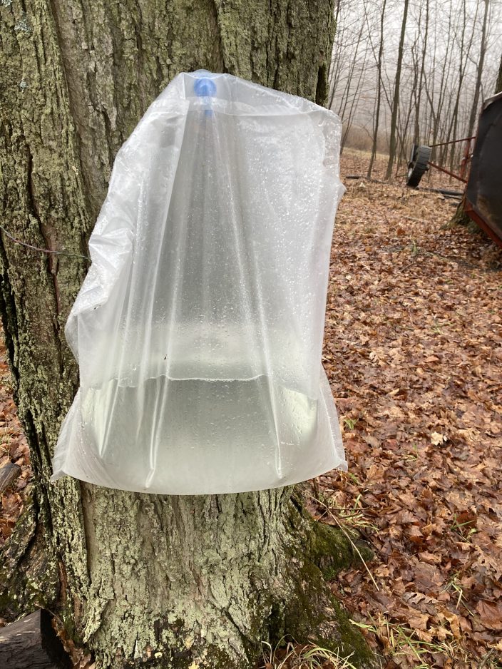 Now, they drive quads and hang durable plastic sap bags on the trees.