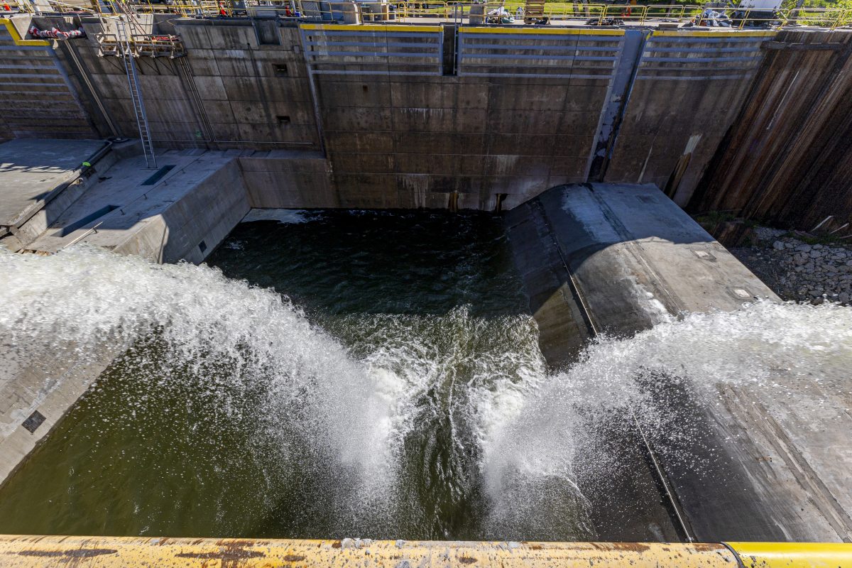 “For the past year-and-a-half to two years, we emptied the chamber and we had to excavate the old river bottom,” Dine explained. “We had to build a new chamber from the inside out. We’ve placed all of our concrete in the chamber and will fill it back up for the next phase of construction.”