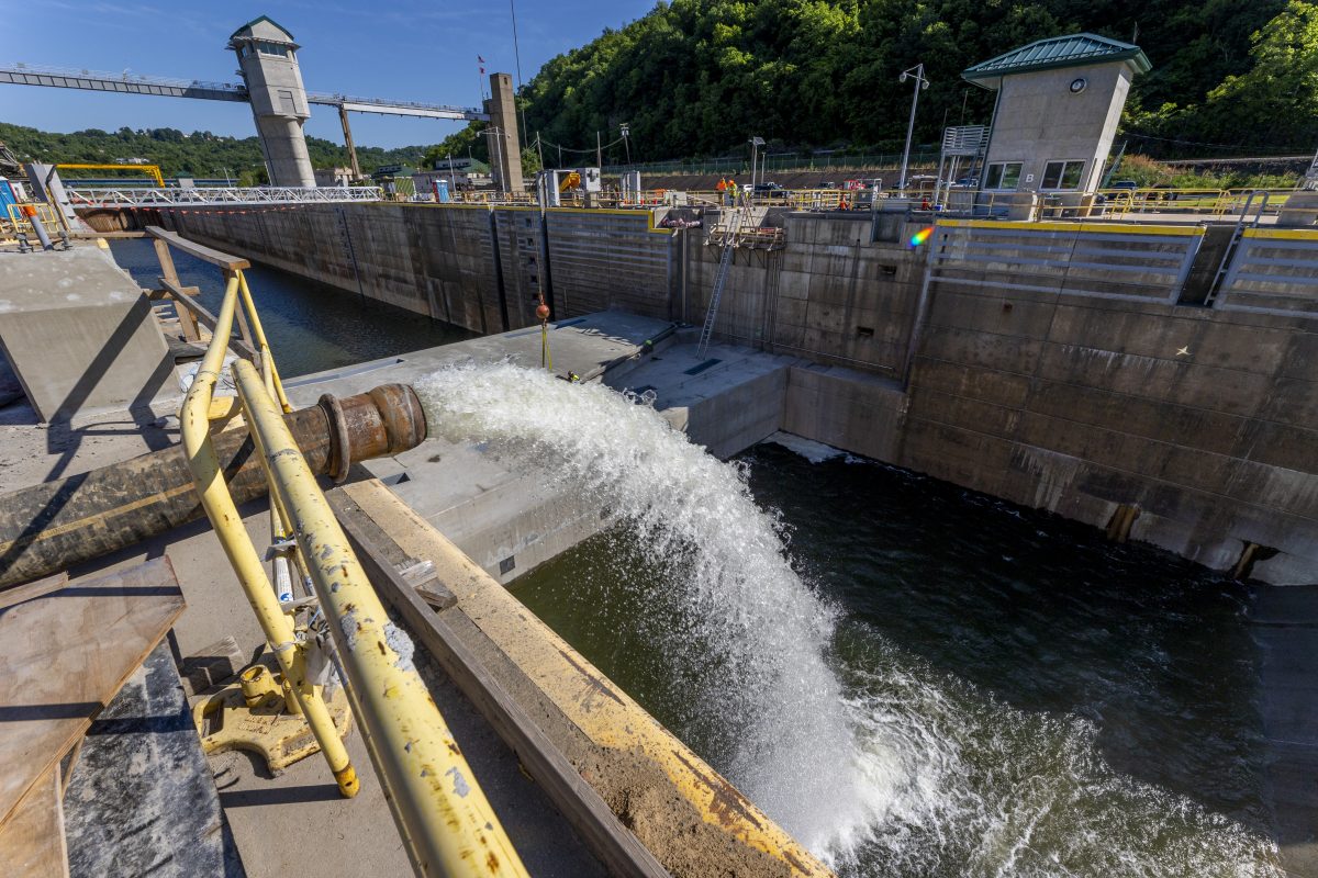 The milestone to which Dine referred was the filling of about 18.5 million gallons of water at the newly constructed chamber at Locks and Dam 4 on the Monongahela River in Charleroi.