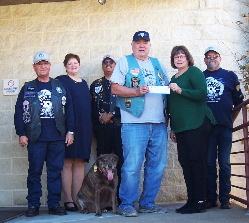 The Blue Knights Law Enforcement Motorcycle Club Chapter 16 recently presented a check for $2,000 to the Fayette County Community Action Food Bank. The check was part of the proceeds from the 20th Annual Blue Ride, a joint effort between the Blue Knights and Washington Lodge 164 Free and Accepted Masons.