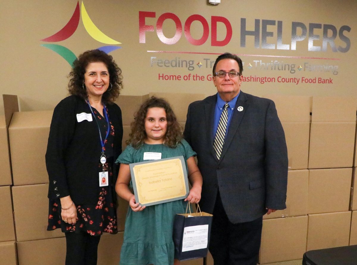 “It’s amazing that someone who is 9 years old has taken it upon herself to raise funds for others who are food insecure,” said George Omiros, executive director and CEO of Food Helpers. “It has a profound impact on the clients we serve daily in Washington County, and we encourage other students and adults to remember those who are in need daily.”