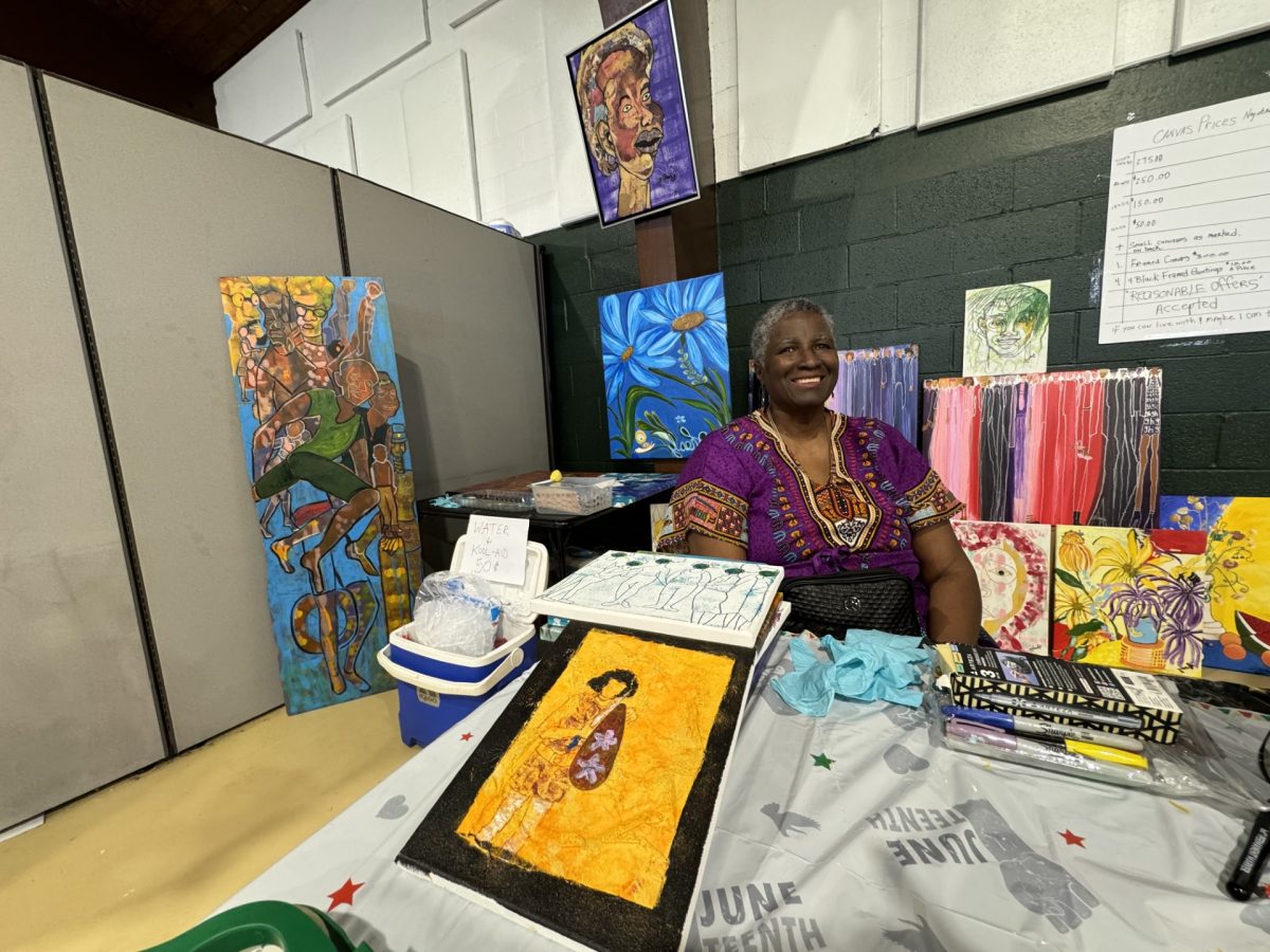 The Juneteenth celebration, co-hosted by LeMoyne Community Center and NAACP Washington branch, included several vendors. Here, artist Gwen Healy displays her artwork.