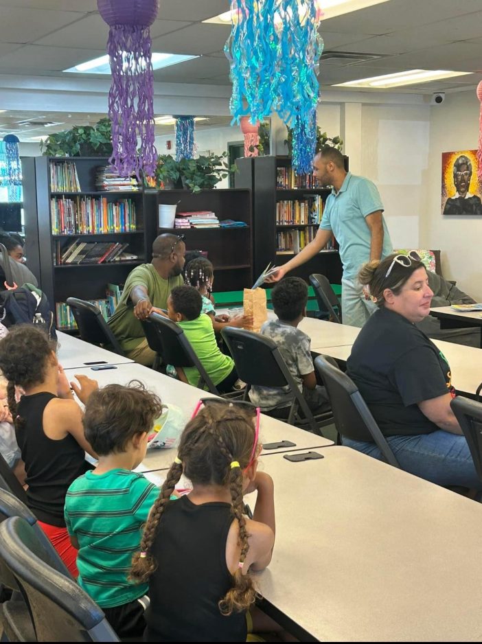 Wash High teacher Treg Campbell reads a Juneteenth book to children during Saturday’s celebration at LeMoyne Community Center.