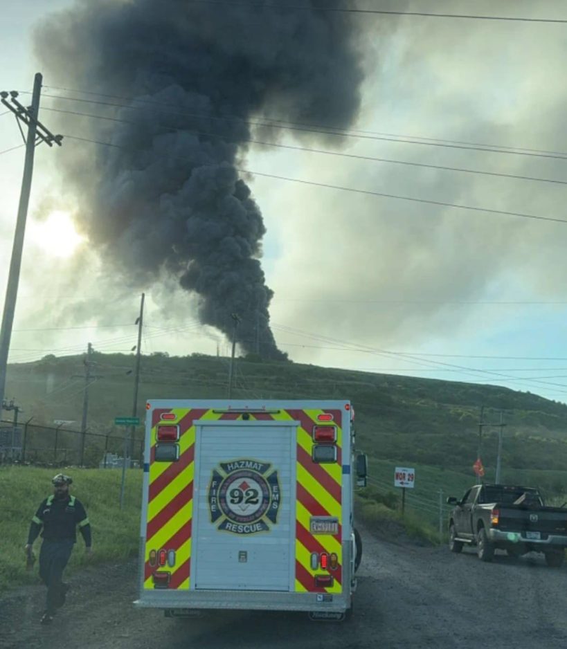 Dark, black smoke could be seen billowing in the sky from miles away as firefighters tried to bring the blaze under control. Policz said no injuries were reported, and all workers at the complex were accounted for.