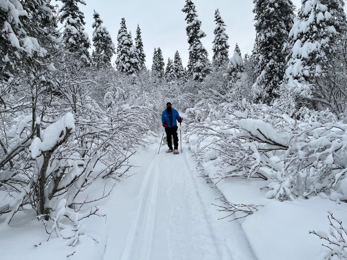 They trekked in snowshoes – during previous competitions, Freeman had run in Hoka Gore-Tex running shoes, but the trails on this trip were mostly snow-covered.