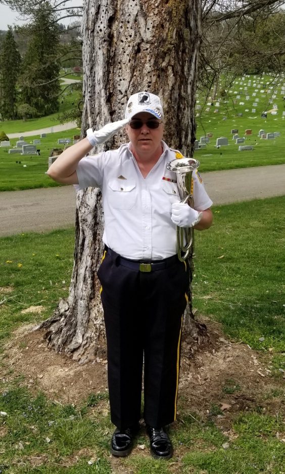 The 53-year-old uses her talent as the post’s main bugler as part of her role in the honor guard.
