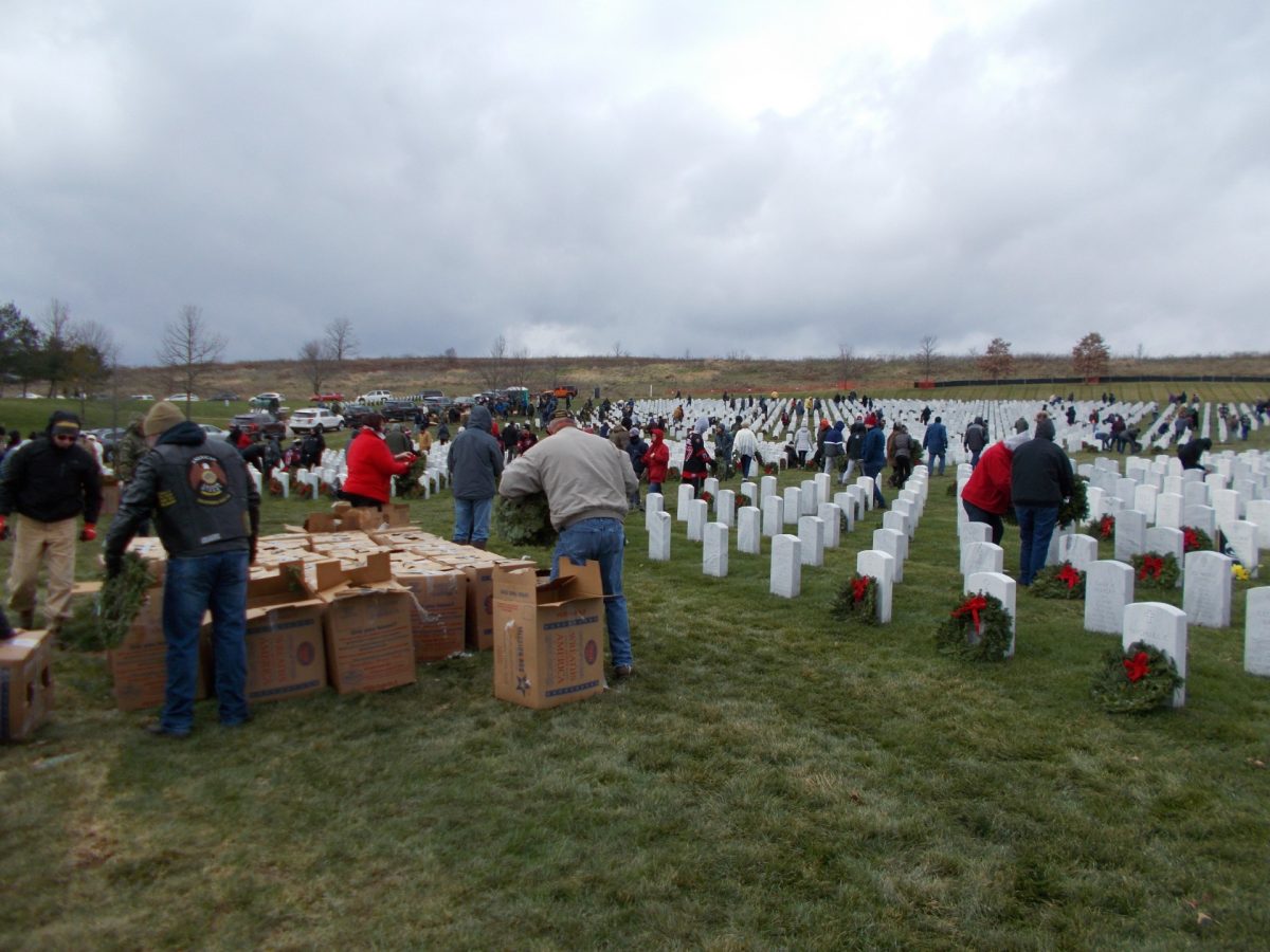 Typically, about 2,000 volunteers, including veterans, lay wreaths on the graves on Dec. 13.