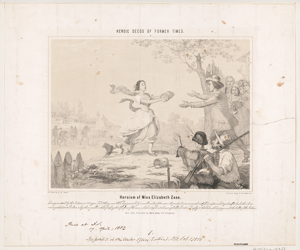 The 1782 siege is most noted for the actions of Betty Zane, considered to be the “heroine of Fort Henry.” With battle raging on the second day, the fort’s defenders ran out of gunpowder. With more stored nearby at Ebenezer Zane’s blockhouse, Betty Zane volunteered to retrieve it. She reached the blockhouse safely, then ran back under heavy fire, returning unharmed with the gunpowder and saving the fort.