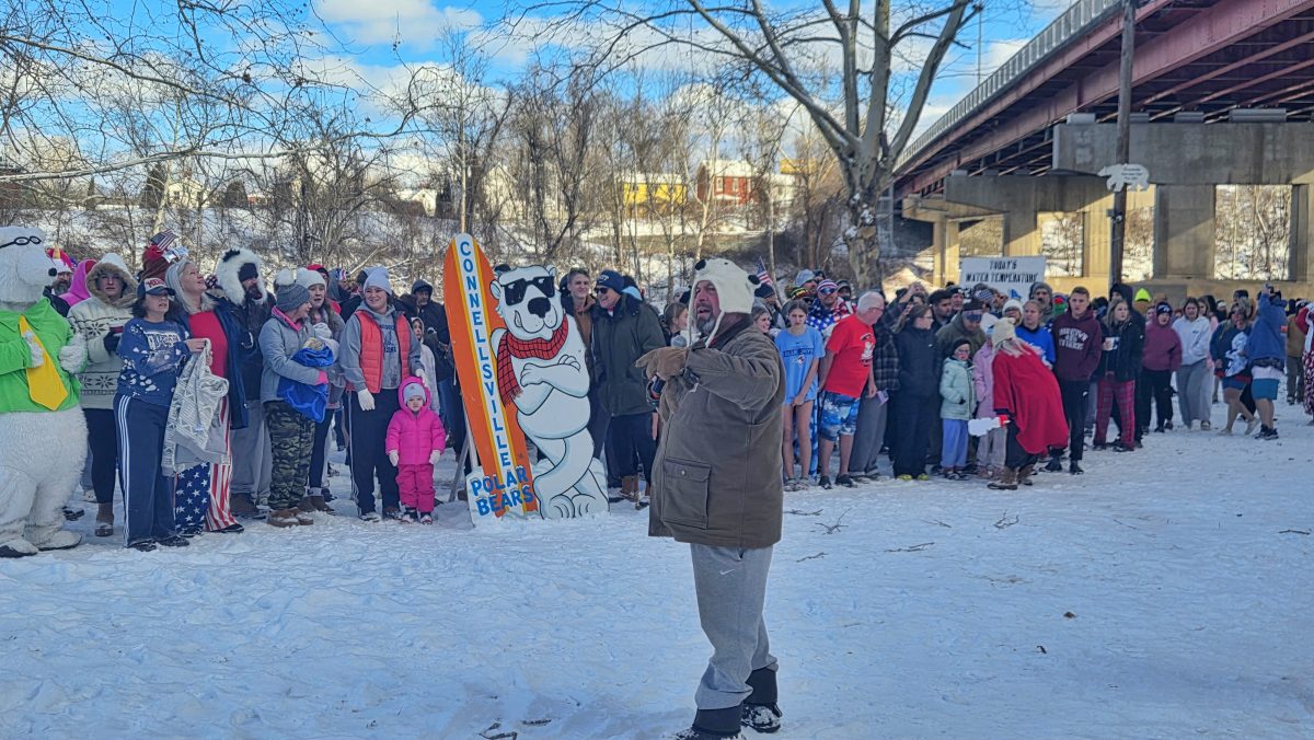 Hundreds brave frigid temps to take New Year’s plunge into Yough River in Connellsville