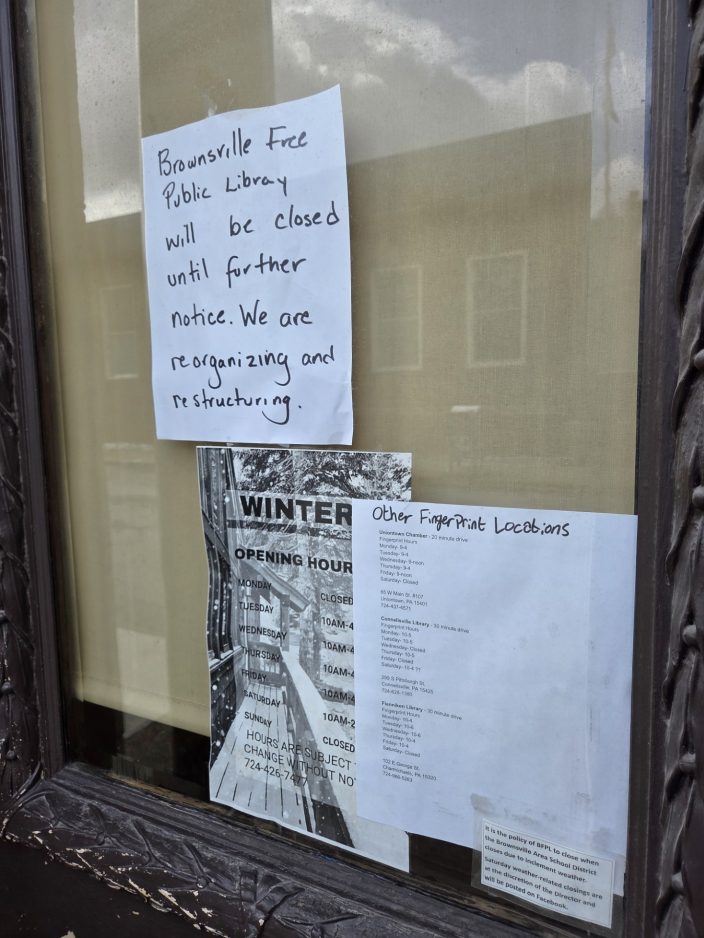 The Brownsville Free Public Library announced last week it was closing indefinitely as a consultant works with the library board to deal with financial and staffing issues.