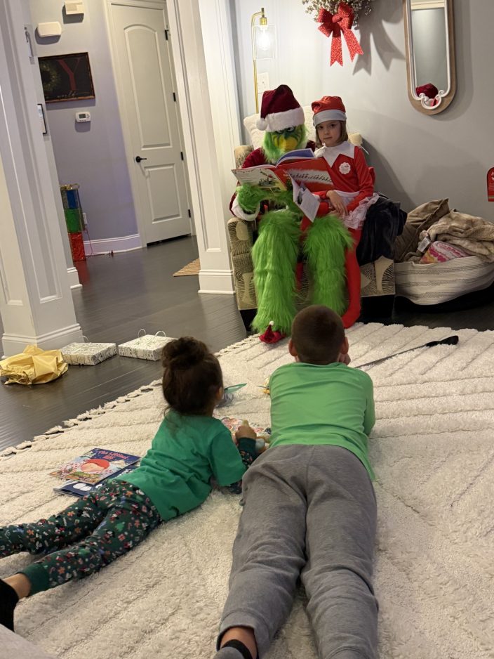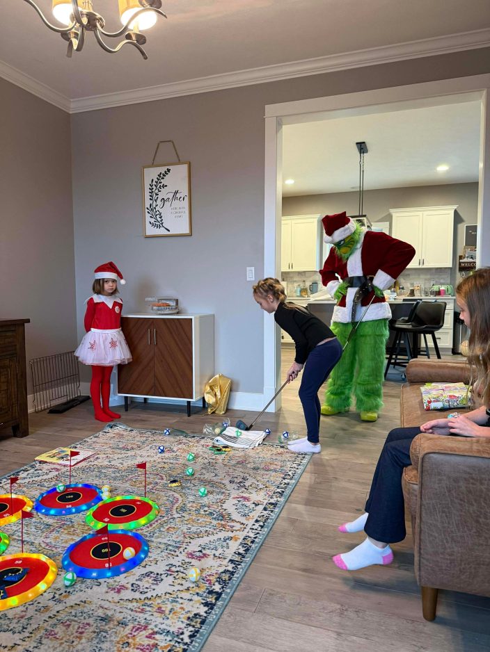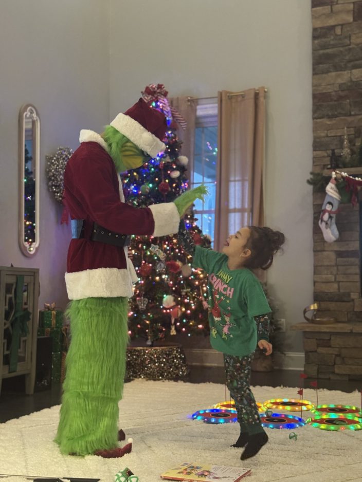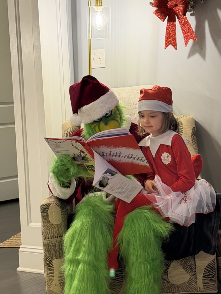 “Henry was wonderful,” said Brandy Sauter, a Peters Township resident who booked a recent Grinch visit for her 7-year-old daughter, Mackenzie. “Kenzie had a blast playing golf and listening to the story. She didn’t want him – or his sister – to leave.”