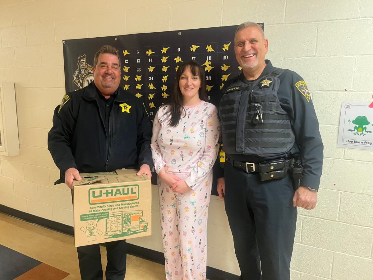 Mernda Mullins of Joe Walker Elementary School in McGuffey School District, is with Capt. Tony Interval and Deputy Dave Borkowski.
