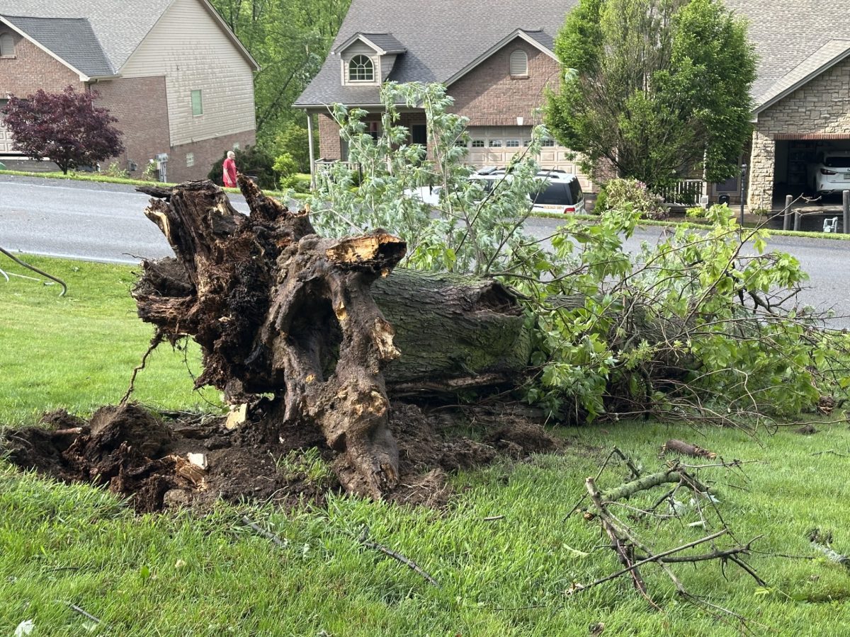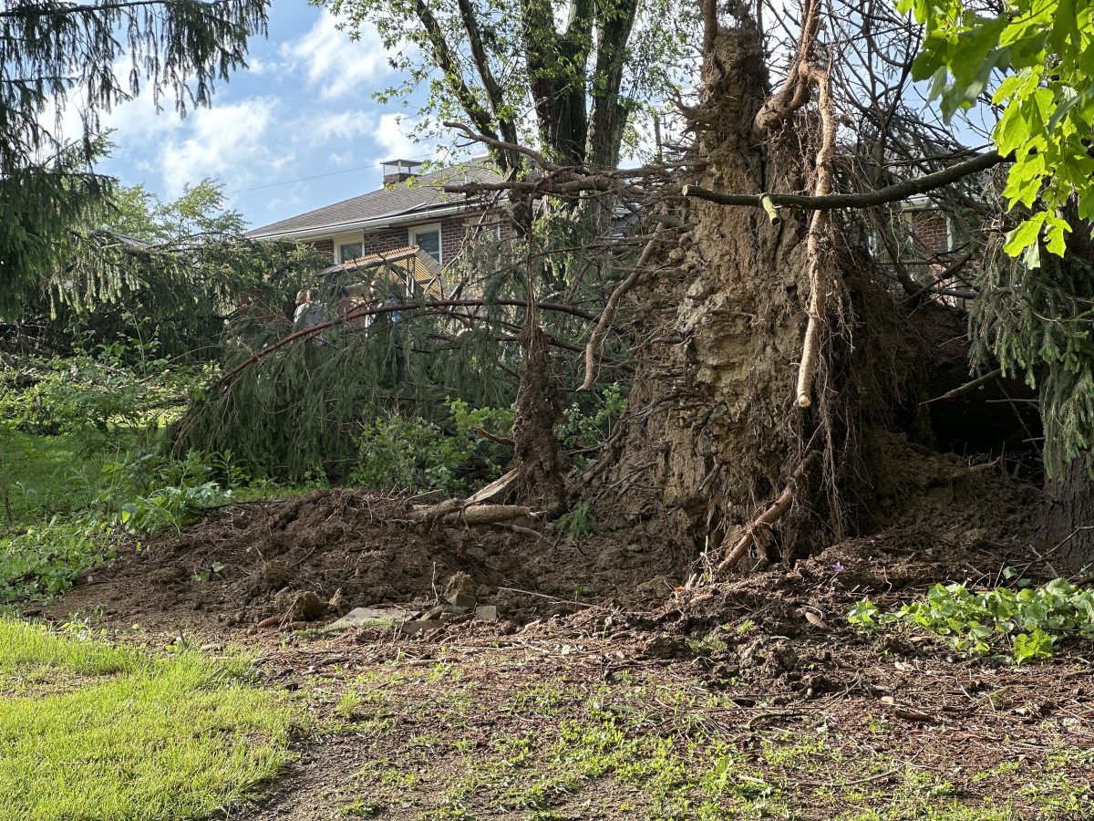 “We went outside to check on our neighbors and make sure everyone was OK, and we saw that Walnut Street was hit pretty badly. In the back, a large pine tree was uprooted and fell on another pine tree, and that tree fell in our neighbor’s yard and on the roof of the house next to it. It was scary.”