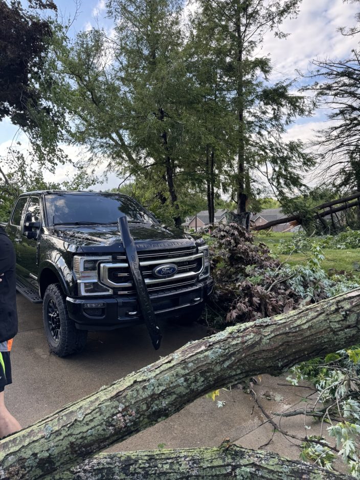 “It all happened really fast. A message popped up on my phone and I saw there was a tornado warning,” said Nicole Kosik. “The truck has some dents, but the tree ended up surrounding it and not falling on it, so we were lucky.”