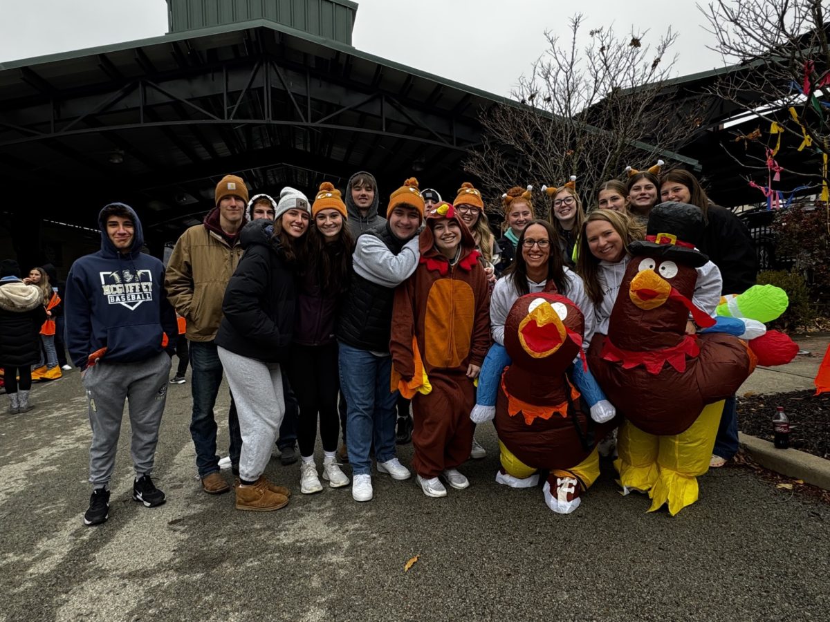 McGuffey High School Student Council co-adviser Allison Gray, clad in a turkey costume, helped students collect money.