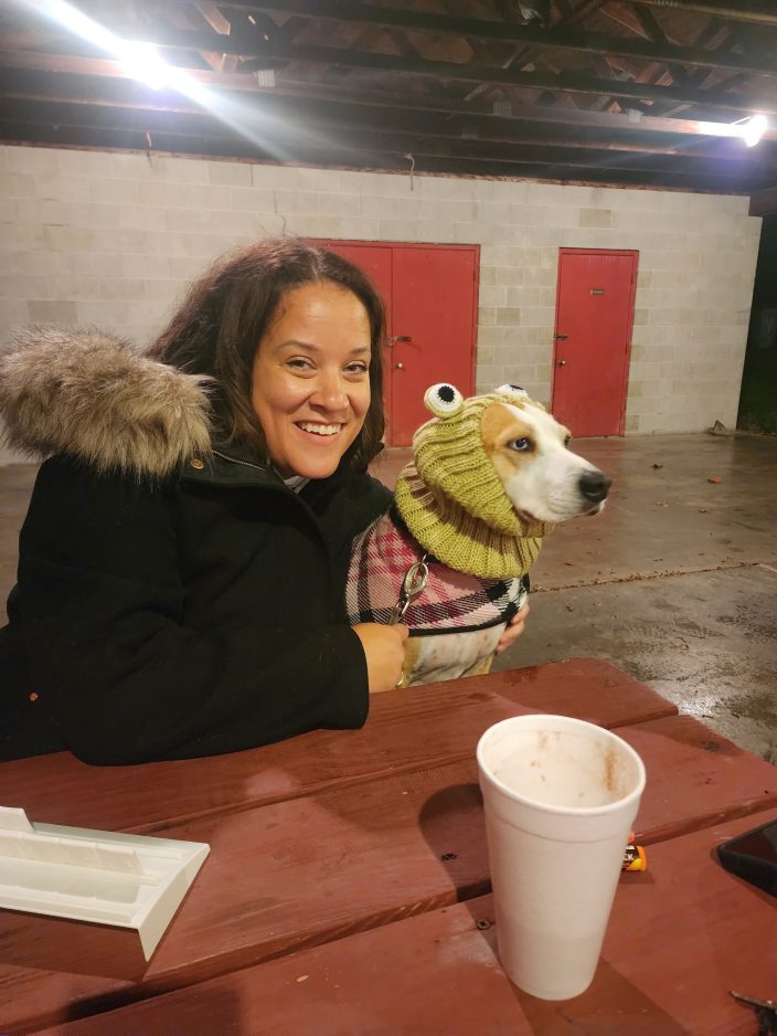 Dr. Monica Speicher, director of WeCare Street Outreach, which provides free medical care, food, and other supplies to the homeless, spent the night with her dog, Penny. Dressed in cold weather camping gear, the seasoned camper – who once camped in freezing rain in the Antarctic – “figured it would be a piece of cake.”