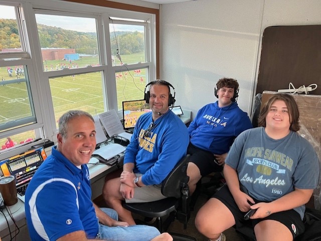 Avella School Board member Scott Willyerd, who has produced television news for a CBS affiliate and radio newscasts – and has produced an award-winning documentary chronicling the relationship between fathers and sons who participated in the Silver Gloves Boxing tournament – pitches in as a play-by-play announcer for football games.