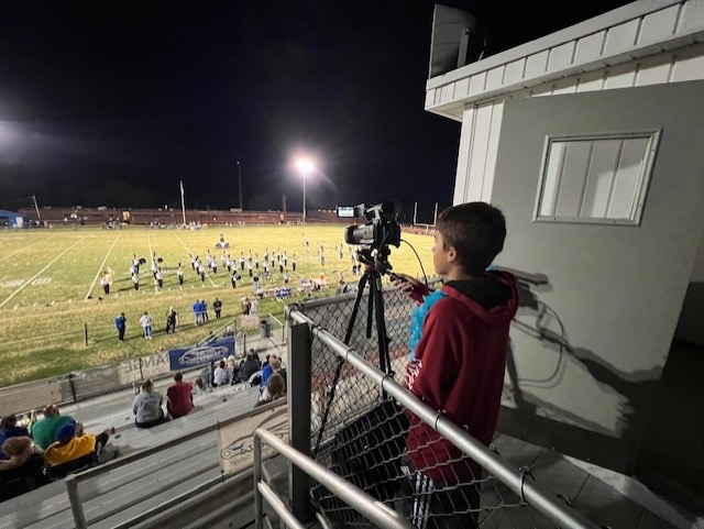 Avella Area High School junior Hayden Evans operates the camera during an Avella football game.