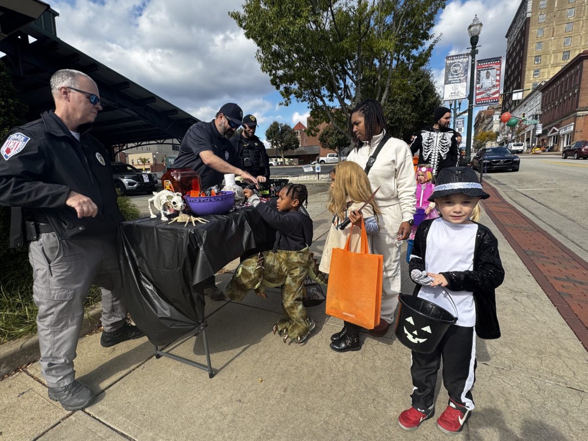 Trick-or-treaters collect candy and treats from a table manned by city of Washington police and the Washington County Sheriff’s Department on Saturday.